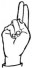 На ћирилици написано АНДЈЕЛИНА ЂУРАШИНОВ састоји се из 18 слова [?]. Исписано ћириличном једноручном азбуком за глувонеме: